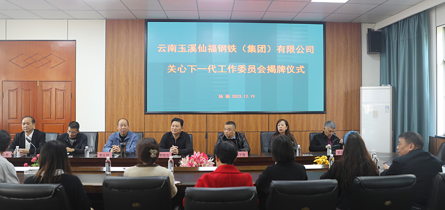 2023年12月19日上午,云南玉溪仙福鋼鐵(集團)有限公司關心下一代工作委員會成立揭牌儀式在仙福鋼鐵集團三樓會議室舉行。