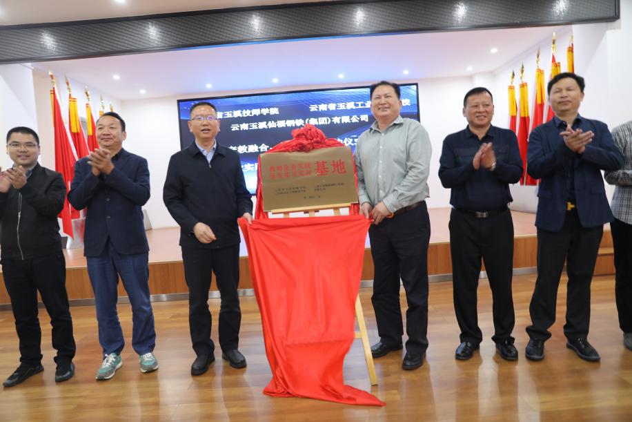 云南玉溪仙福鋼鐵(集團)有限公司李枝官總經理和云南省玉溪技師學院黨委張紹東書記進行“教師企業實踐、學生實習實訓基地”揭牌。